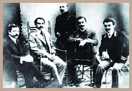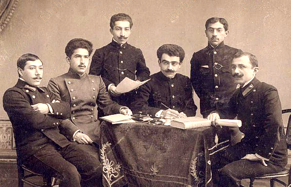 Yusif Vəzir Çəmənzəminli tələbələr ilə birlikdə. Kiyev 1914-cü il.