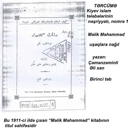 "... Tarixin millətimizə nə qədər mənfəəti olduğunu nəzərə alıb Kiyev müsəlman studentlərinin nəşriyyat heyəti ərbabi qələmimizdən Azərbaycan tarixini yazmağı rica edir. Tarix müxtəsər və sadəcə Azərbaycan dilində olmalıdır. Onu heyət təb etdirməyi öhdəsinə götürür və bundan əlavə tarix müəllifinə müküfüt da verməyi vəd edir."