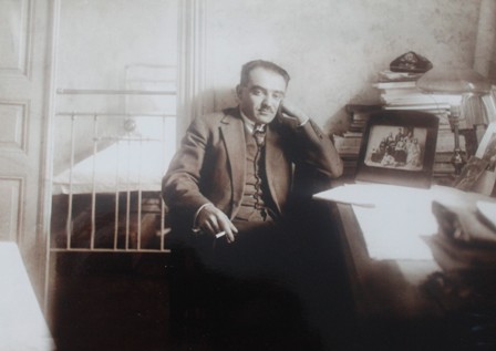 Yusif Vəzir Bakıdakı evində yazı masası arxasında, 1927-ci il, Avropadan Sovet Azərbaycanına qayıtdı